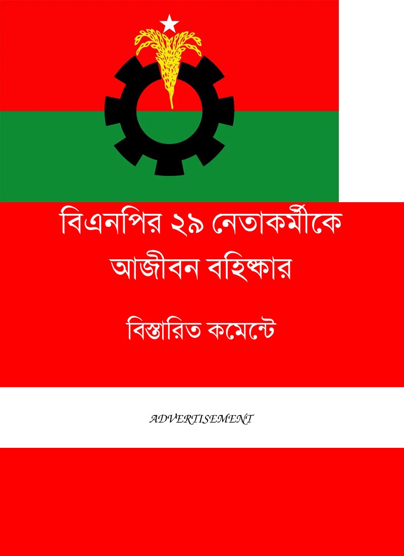 বিএনপির ২৯ নেতাকর্মীকে আজীবন বহিষ্কার