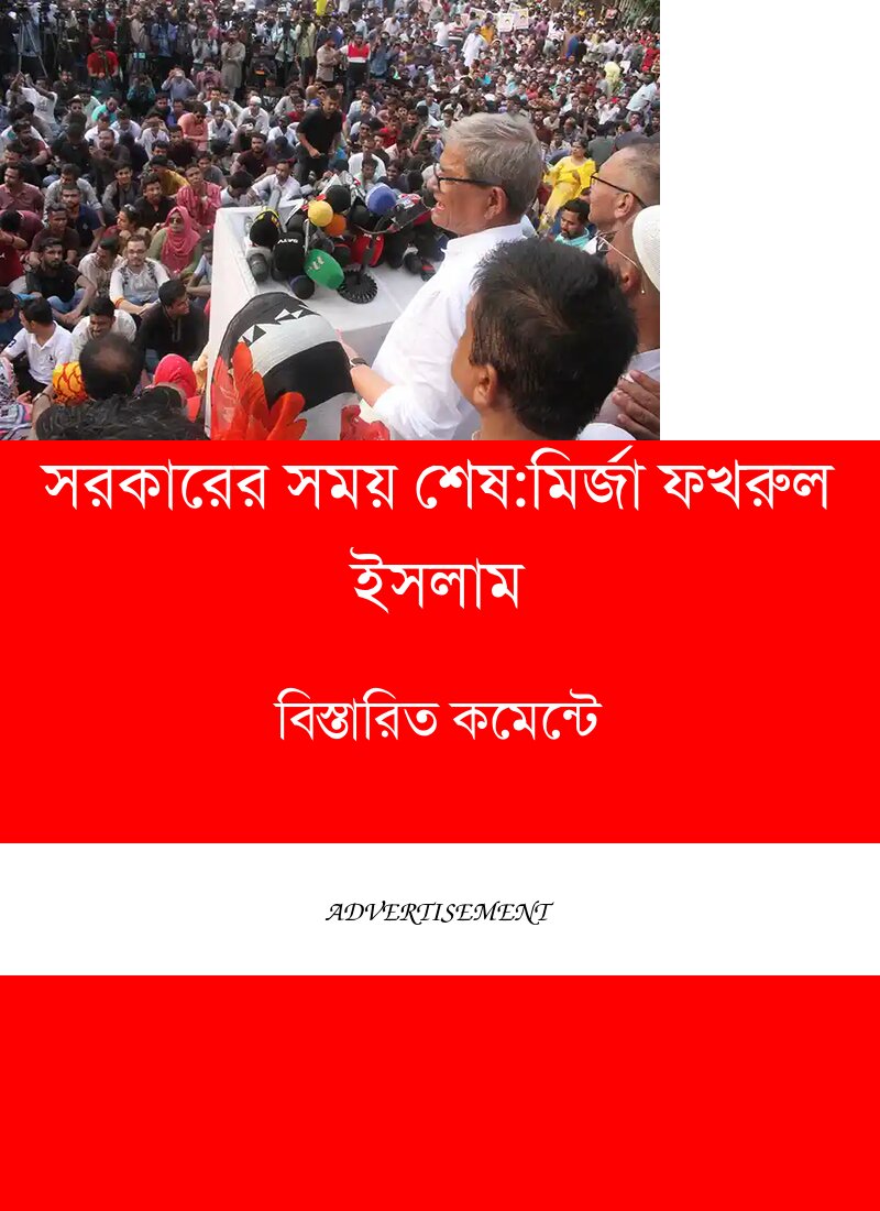 সরকারের উদ্দেশ্যে ফখরুল বলেন, এখনও সময় আছে জনগণের চোখের ভাষা বুঝতে চেষ্টা করুন। জনগণকে মুক্তি দেন এবং জনগণের যে দাবি উঠেছে সেই দাবি মেনে নেন।