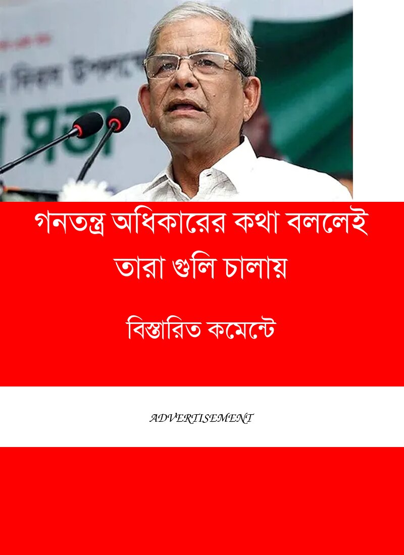 মির্জা ফখরুল বলেন, নিপীড়িত মানুষ ও বিএনপিসহ বিরোধী দলগুলোকে আর দমিয়ে রাখা যাবে না ভেবেই সরকার এখন শান্তিপূর্ণ যেকোনো কর্মসূচিতেই দলীয় ক্যাডার ও আইনশৃঙ্খলা বাহিনী দিয়ে বর্বরোচিত আক্রমণ চালাচ্ছে। দেশের অর্থনীতিকে দেউলিয়া করে ক্ষমতাসীনরা মহাসমারোহে বিপুল দুর্নীতির মাধ্যমে অর্থ-বিত্তের মালিক হয়ে আরাম-আয়েশের যে স্বর্গ রচনা করেছে সেটি যেন হাতছাড়া না হয়, সে জন্য অবৈধ ক্ষমতাকে ধরে রাখতে রাষ্ট্রীয় সন্ত্রাসের মাধ্যমে গণতান্ত্রিক প্রতিষ্ঠানকে নিশ্চিহ্ন করেছে। মানুষের ভোটাধিকারকে হরণ করে অবাধ ও সুষ্ঠু নির্বাচনকে অদৃশ্য করা হয়েছে উল্লেখ করে বিএনপি মহাসচিব বলেন, নিত্যপ্রয়োজনীয় জিনিসের লাগামহীন ঊর্ধ্বগতি, গ্যাস, বিদ্যুৎসহ জ্বালানি তেলের দাম কোনো কারণ ছাড়াই বারবার বৃদ্ধি করার কারণে জনগণের পিঠ দেয়ালে ঠেকে গেছে। এই শ্বাসরুদ্ধকর পরিস্থিতি থেকে পরিত্রাণ পেতে জনগণের ঐক্যবদ্ধ আন্দোলনের কোনো বিকল্প নেই। সকল গণতন্ত্রমনা শ্রেণি-পেশার মানুষসহ সকল বিরোধী রাজনৈতিক দলকে একযোগে রাস্তায় নামতে হবে।