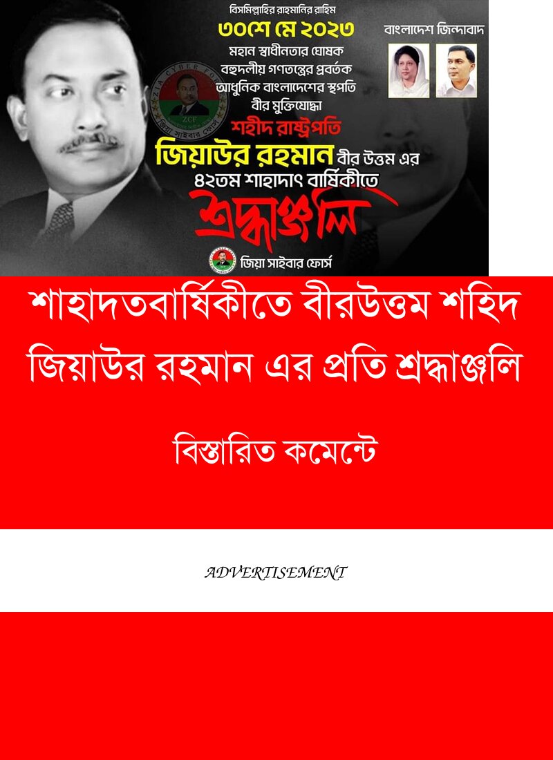 শাহাদতবার্ষিকীতে বীরউত্তম শহিদ জিয়াউর রহমান এর প্রতি শ্রদ্ধাঞ্জলি