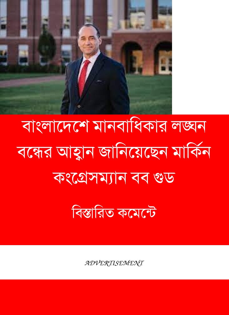 বাংলাদেশের প্রধানমন্ত্রী শেখ হাসিনা সরকারের মানবাধিকার লঙ্ঘন বন্ধ করার এবং বাংলাদেশের জনগণের জন্য অবাধ ও সুষ্ঠু সংসদ নির্বাচন নিশ্চিত করার আহ্বান জানিয়েছেন মার্কিন কংগ্রেসম্যান বব গুড। তিনি ভার্জিনিয়া অঙ্গরাজ্যের ৫ম কংগ্রেসনাল ডিস্ট্রিক্টের রিপাবলিকান কংগ্রেসম্যান।