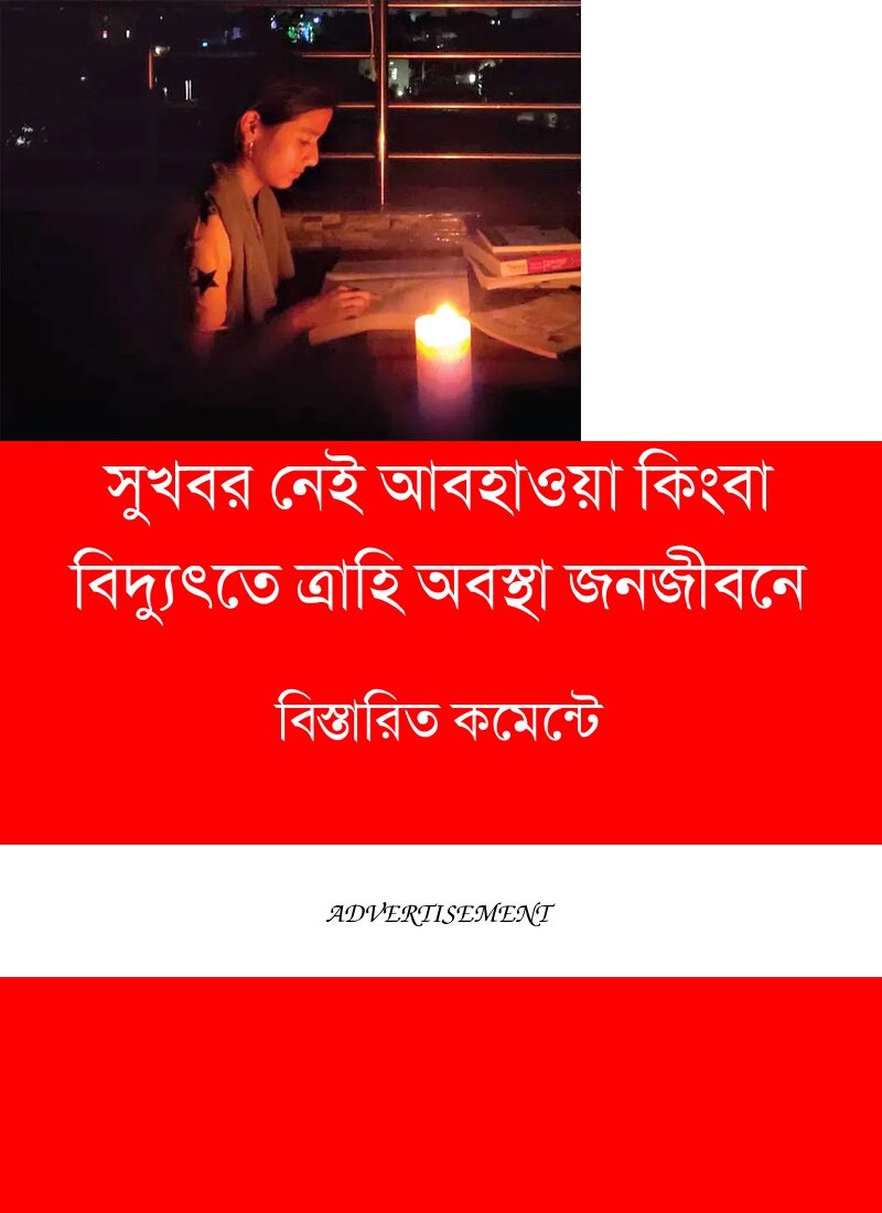 তীব্র তাপদাহের মাঝে আবহাওয়া অধিদপ্তর যেমন সুখবর দিচ্ছে না তেমনি সুখবর দিতে পারেননি বিদ্যুৎ ও জ্বালানি প্রতিমন্ত্রী নসরুল হামিদও। তিনি গতকাল একটি অনুষ্ঠানে বলেন, কয়েকটি পাওয়ার প্ল্যান্ট কাজ না করায় লোডশেডিং বেড়েছে। কিছুদিন এ পরিস্থিতি থাকবে। কয়লার অভাবে একটি বিদ্যুৎকেন্দ্র (পায়রা) অর্ধেক বন্ধ আছে, আগামী ৫ তারিখের (জুন) পর বাকি অর্ধেকও বন্ধ হয়ে যাবে। সিস্টেমে একটি বড় অংশ বিদ্যুৎ না পাওয়ায় জনদুর্ভোগ কিছুটা বেড়েছে।