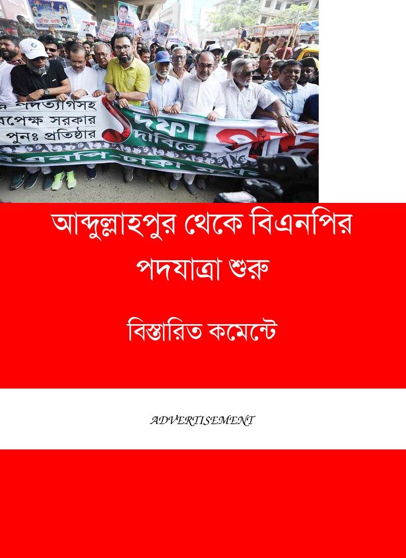 আব্দুল্লাহপুর থেকে ঢাকা মহানগর উত্তর বিএনপির উদ্যোগে এ পদযাত্রা রামপুরা ব্রিজে গেলে সেখান থেকে ঢাকা মহানগর দক্ষিণ বিএনপির নেতা কর্মীরা পদযাত্রায় অংশ নিবেন।