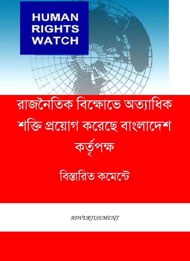 জুলাইয়ের শেষ দিকে হওয়া বিক্ষোভগুলোতে বাংলাদেশ পুলিশ নির্বিচারে রাবার বুলেট, টিয়ার গ্যাস এবং জলকামান ব্যবহার করেছে। পাশাপাশি বিক্ষোভের সময় বিরোধী দলের সমর্থকদের লাঠিপেটা করা হয়েছে। ২রা আগস্ট নিজেদের ওয়েবসাইটে প্রকাশিত এক বিবৃতিতে এ কথা বলেছে হিউম্যান রাইটস ওয়াচ। এতে বলা হয়, গত ২৯শে জুলাইর বড় বিক্ষোভের পূর্বে কর্তৃপক্ষ প্রধান বিরোধী দল বাংলাদেশ জাতীয়তাবাদী দল বা বিএনপি’র আট শতাধিক নেতা ও কর্মীকে গ্রেপ্তার করেছে।