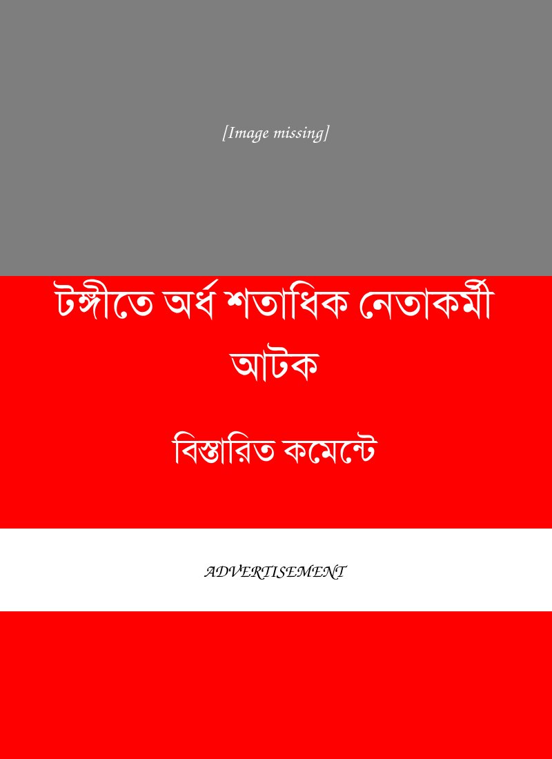 বৃহস্পতিবার (২৬ অক্টোবর) সন্ধ্যায় জাতীয়তাবাদী শ্রমিকদলের কেন্দ্রীয় কার্যকরী সভাপতি সালাহ উদ্দিন সরকারের টঙ্গীর বাসভবন প্রাঙ্গণ থেকে এসব নেতাকর্মীদের আটক করা হয়।