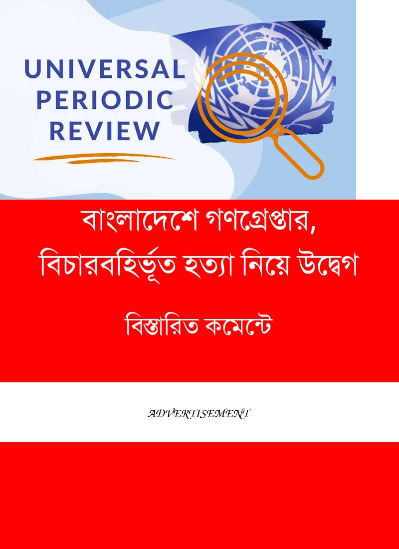 জেনেভায় আজ জাতিসংঘের ইউনিভার্সাল পিরিয়ডিক রিভিউতে (ইউপিআর) বাংলাদেশের মানবাধিকার পরিস্থিতি যাচাইয়ে উঠছে বিচারবহির্ভূত হত্যাকাণ্ড, জোরপূর্বক গুম, বিরোধী নেতাকর্মীদের গণগ্রেপ্তারের অভিযোগ। বিচারবহির্ভূত হত্যাকাণ্ডের সংখ্যা ২০২০ সালে কমে এলেও র‌্যাবের হাতে এসব ঘটনা, মাদকবিরোধী অভিযানে নির্যাতন ও অবমাননাকর আচরণের বিষয়ে উদ্বেগ প্রকাশ করা হয়েছে। বিভিন্ন মানবাধিকার বিষয়ক সংগঠনের সুপারিশ নিয়ে এসব বিষয়ে গত ২৪শে আগস্ট জাতিসংঘের মানবাধিকার পরিষদ একটি সারসংক্ষেপ প্রকাশ করে। তাতে বলা হয়, প্রতিবাদ বিক্ষোভকারীদের বিরুদ্ধে অতিরিক্ত শক্তি প্রয়োগ বা বেআইনি শক্তি প্রয়োগের ঘটনা তদন্ত করে এ বিষয়ে ব্যবস্থা নেয়ার সুপারিশ করেছে অ্যামনেস্টি ইন্টারন্যাশনাল।