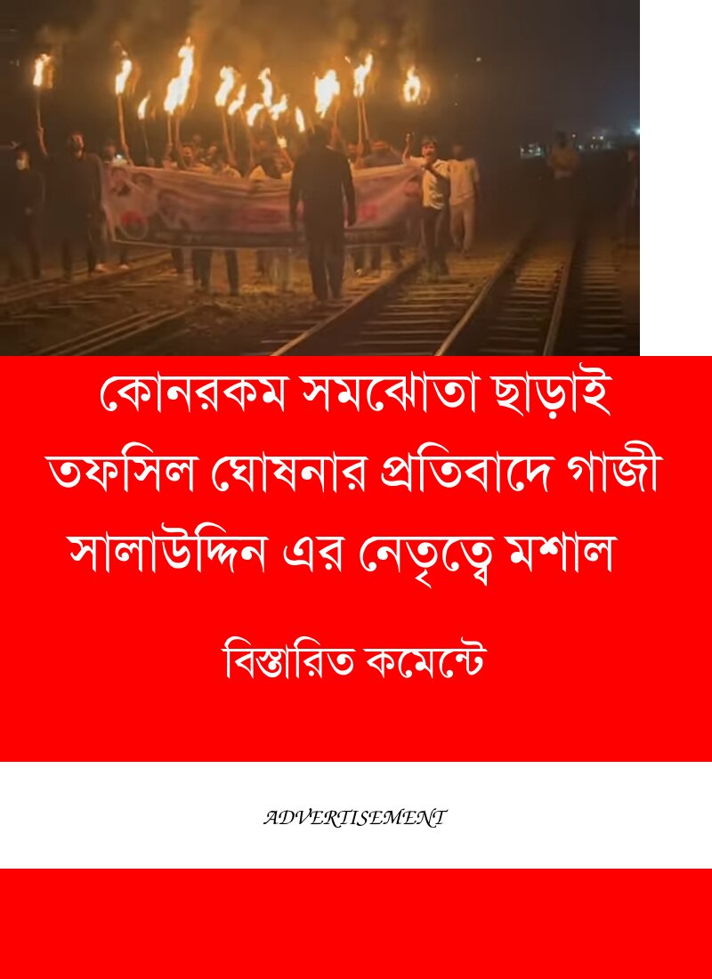 কোনরকম সমঝোতা ছাড়াই তফসিল ঘোষনার প্রতিবাদে গাজী সালাউদ্দিন এর নেতৃত্বে মশাল মিছিল
