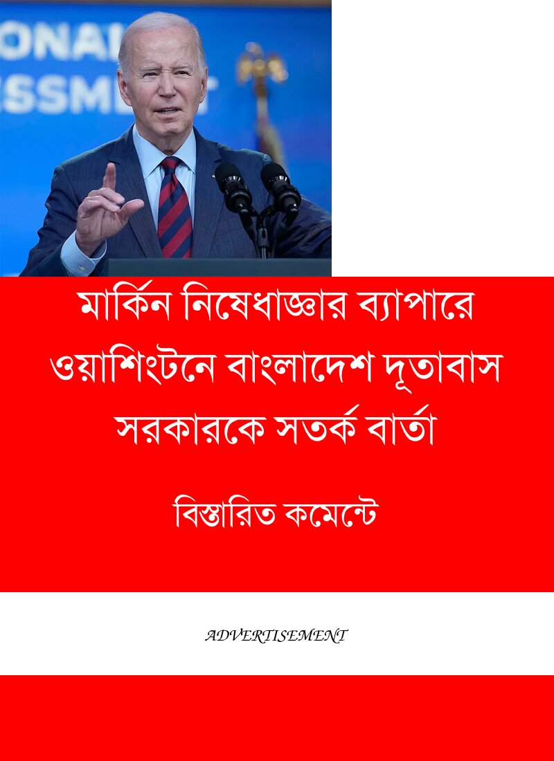 মার্কিন নিষেধাজ্ঞার ব্যাপারে ওয়াশিংটনে অবস্থিত বাংলাদেশ দূতাবাস সরকারকে সতর্ক করেছে। ২০শে নভেম্বর দূতাবাসের মিনিস্টার (বাণিজ্য) মো. সেলিম রেজা স্বাক্ষরিত চিঠিতে বলা হয়েছে, যুক্তরাষ্ট্রের প্রেসিডেন্ট জো বাইডেনের ইস্যু করা এবং পররাষ্ট্রমন্ত্রী অ্যান্টনি ব্লিনকেনের ঘোষণা দেয়া ‘মেমোরেন্ডাম অন এডভান্সিং ওয়ার্কার এমপাওয়ারমেন্ট, রাইটস অ্যান্ড হাই লেবার স্ট্যান্ডার্ডস গ্লোবালি’ শীর্ষক সংকলিত রিপোর্টটি সদয় বিবেচনার জন্য এতদসঙ্গে যুক্ত করে দেয়া হলো। যদিও এই ‘মেমোরেন্ডাম’ মনে হচ্ছে বিশ্বব্যাপী সব দেশের ওপরই প্রযোজ্য, তবু এটা বিশ্বাস করার যথেষ্ট কারণ আছে যে, এর অন্যতম টার্গেট হতে পারে বাংলাদেশ। রিপোর্টটি প্রকাশের সময় নির্দিষ্ট করে বাংলাদেশের শ্রম ইস্যুকে উদ্ধৃত করেছেন যুক্তরাষ্ট্রের পররাষ্ট্রমন্ত্রী এবং ভারপ্রাপ্ত শ্রমবিষয়ক মন্ত্রী। এই ‘মেমোরেন্ডাম’ অনুযায়ী, শ্রমবিষয়ক ইস্যুগুলোতে সরাসরি প্রভাব (ইন্টার্যাক্ট/ডিল) বিস্তার করতে পারে যুক্তরাষ্ট্রের পররাষ্ট্রবিষয়ক মিশনগুলো। এই নীতির ফলে অনেক অভ্যন্তরীণ ইস্যুতে হস্তক্ষেপে আগ্রহী মার্কিন কূটনীতিক বা মিশনগুলো উৎসাহিত হতে পারে। দৃশ্যত যদি তারা মনে করে বা বিশ্বাস করে যে, শ্রম অধিকার লঙ্ঘিত হচ্ছে তাহলে এই সুযোগকে যে কোনো ব্যক্তি, প্রতিষ্ঠান বা রাষ্ট্রীয় পর্যায়ে আরোপ করা হতে পারে। এই ‘মেমোরেন্ডামের’ রাজনৈতিক প্রেক্ষাপট বহু কারণে উদ্বেগজনক হতে পারে। ‘মেমোরেন্ডামে’ শ্রম অধিকার বিষয়ে যা বলা হয়েছে তার নেপথ্যে আছে রাজনীতি। যুক্তরাষ্ট্র ভিন্ন উপায়ে রাজনৈতিক উদ্দেশ্যে ব্যবহারের চেষ্টা করতে পারে তা।