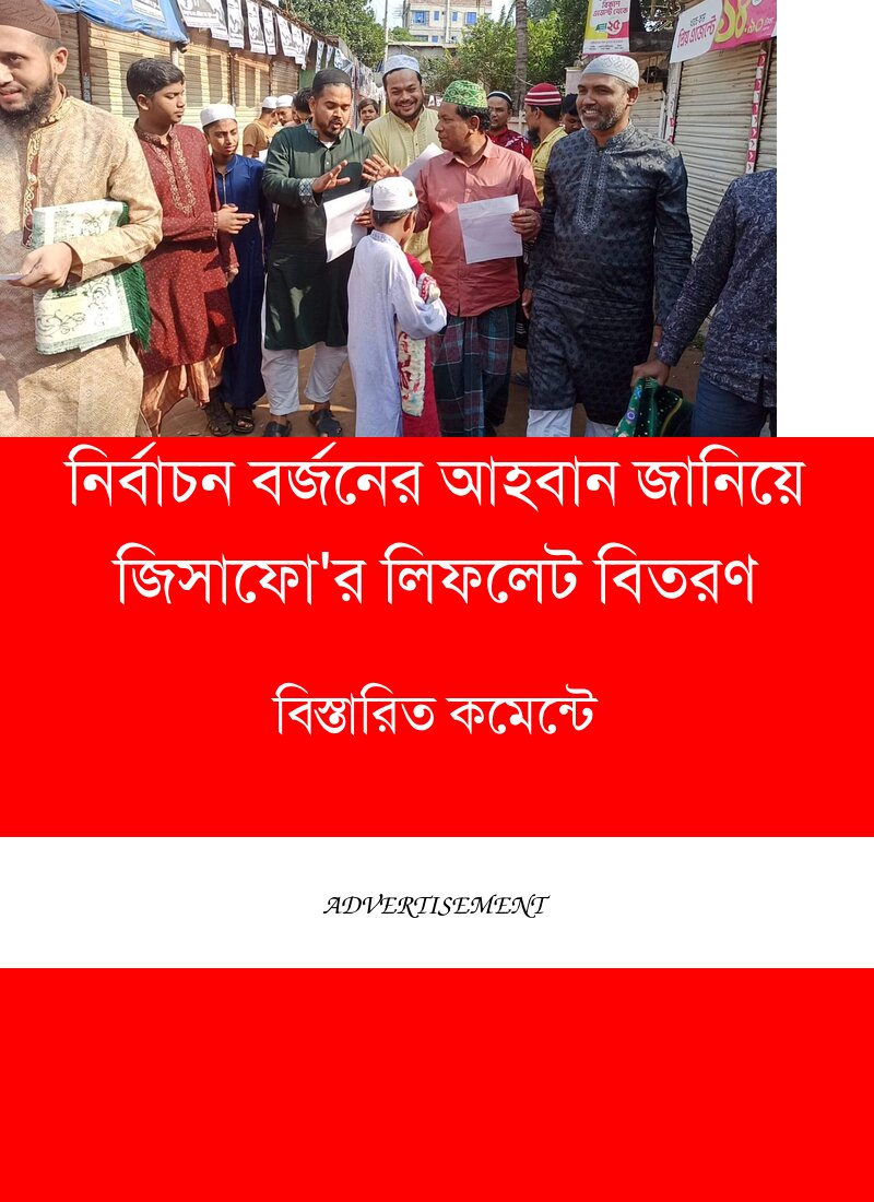 নির্বাচন বর্জনের আহবান জানিয়ে জিসাফো’র লিফলেট বিতরণ