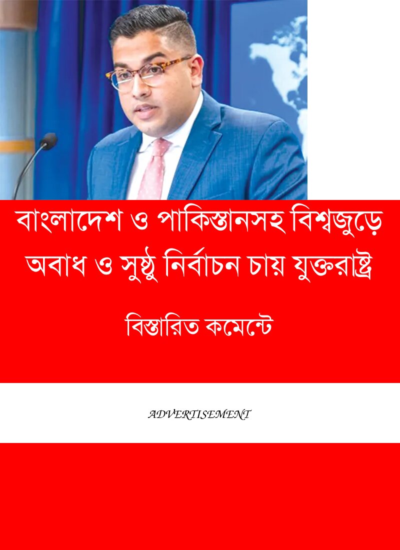 পাকিস্তানে নির্বাচন ইস্যুতে যুক্তরাষ্ট্রের পররাষ্ট্র মন্ত্রণালয়ের মুখপাত্র বেদান্ত প্যাটেল বলেছেন, বাংলাদেশ ও পাকিস্তানসহ বিশ্বের সর্বত্র অবাধ ও সুষ্ঠু নির্বাচন দেখতে চায় যুক্তরাষ্ট্র। আগামী ৮ই ফেব্রুয়ারি পাকিস্তানে জাতীয় ও প্রাদেশিক নির্বাচন। এই নির্বাচনকে সামনে রেখে বাংলাদেশের ওপর যেমন ভিসা নিষেধাজ্ঞার মতো চাপ দিয়েছে যুক্তরাষ্ট্র, পাকিস্তানের ক্ষেত্রে তেমনটা হচ্ছে না। এ তথ্য তুলে ধরে একজন সাংবাদিক প্রশ্ন করলে বেদান্ত প্যাটেল ওই মন্তব্য করেন। ওই সাংবাদিক জানতে চান, গত কয়েক মাস ধরে আপনাকে এবং ম্যাথিউ মিলারকে বহুবার বলতে শুনেছি যে, আপনারা অবাধ নির্বাচন চান। পাকিস্তানে একটি অবাধ ও সুষ্ঠু নির্বাচনের আহ্বান জানিয়েছেন আপনারা। কিন্তু আমি একটি বিষয় শুনিনি। পাকিস্তানে নির্বাচনের আর মাত্র দুই সপ্তাহ বাকি। এমনকি বৃহস্পতিবার গ্রেপ্তার করা হয়েছে পাকিস্তানের সবচেয়ে সম্মানীত রাজনীতিবিদদের অন্যতম জাভেদ হাশমিকে। আমি বলতে চাই, ভুলে গেছেন সাবেক প্রধানমন্ত্রী ইমরান খান ও তার সমর্থকদের?