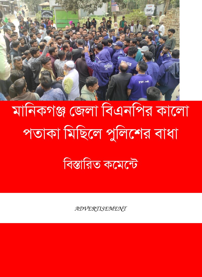 অবৈধ ডামি সংসদ বাতিল ও নির্দলীয় নিরপেক্ষ তত্ত্বাবধায়ক সরকারের অধীনে নির্বাচনের দাবীতে মানিকগঞ্জ জেলা বিএনপির নেতাকর্মীরা কালো পতাকা মিছিল করার সময় পুলিশি বাধার সম্মুখীন হয়।