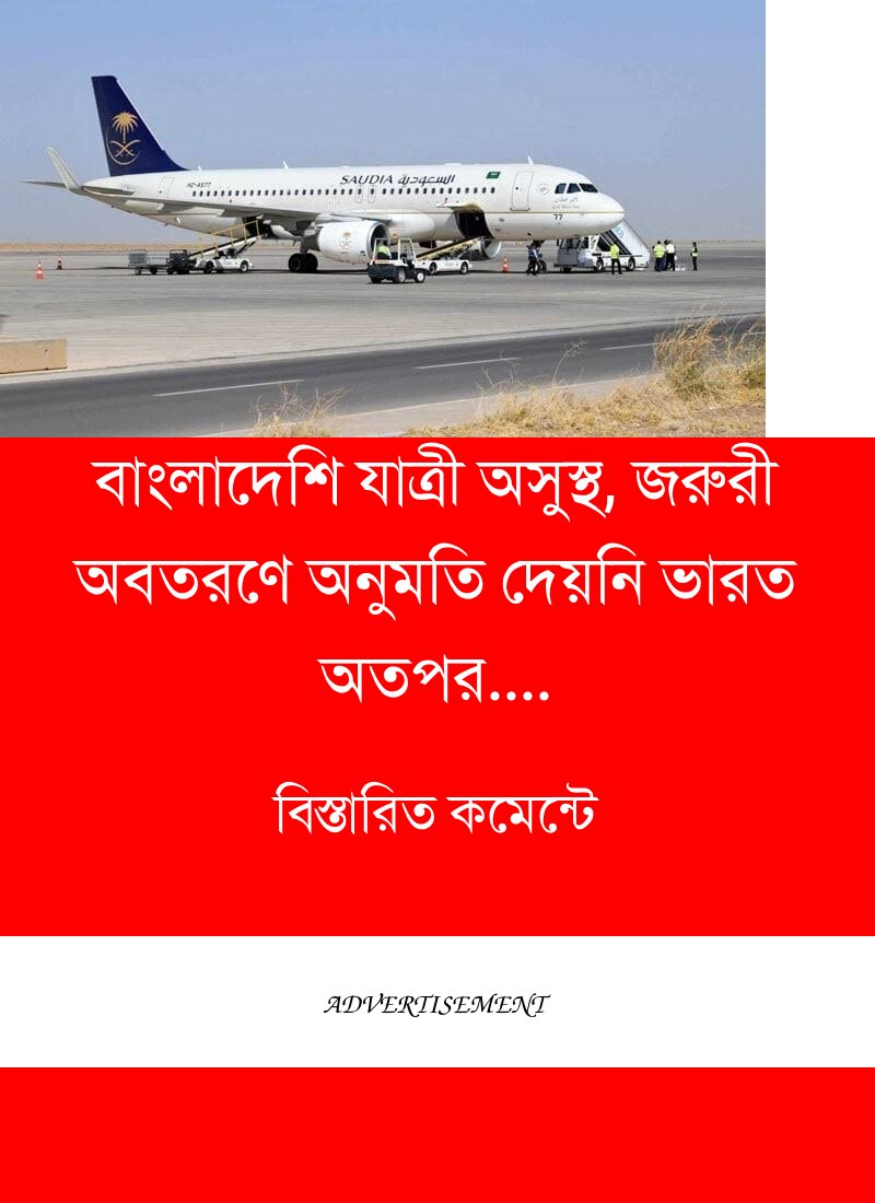 বাংলাদেশি যাত্রী অসুস্থ, জরুরী অবতরণে অনুমতি দেয়নি ভারত অতপর….