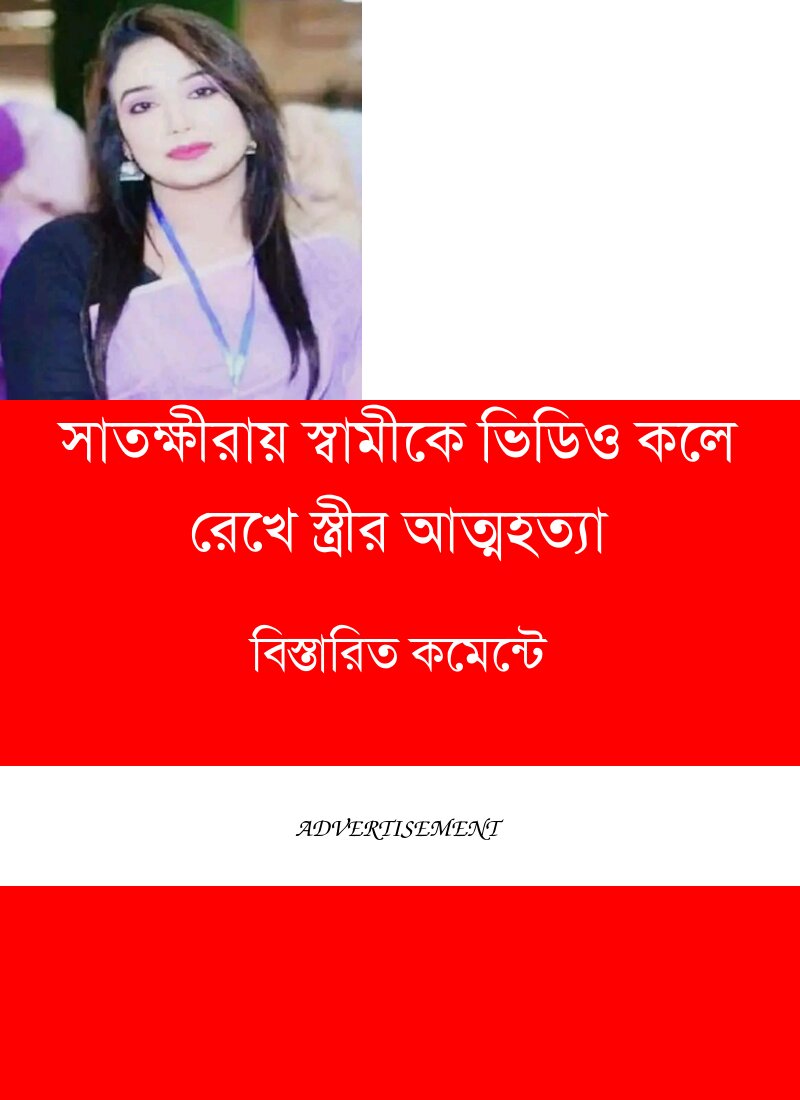 স্বামীকে ভিডিও কলে রেখে গলায় ওড়না পেঁচিয়ে ইরানি আফরোজ তানু নামে দুই সন্তানের জননী আত্মহত্যা করেছেন। রোববার দূপুরের দিকে সাতক্ষীরা শহরের কামালনগর এলাকায় এ ঘটনা ঘটে।