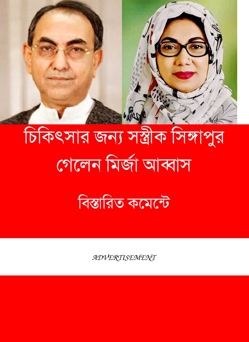 চিকিৎসার জন্য সিঙ্গাপুরে গিয়েছেন বিএনপি’র স্থায়ী কমিটির সদস্য মির্জা আব্বাস ও তার স্ত্রী মহিলা দলের সভাপতি আফরোজা আব্বাস। মঙ্গলবার সকালে হযরত শাহজালাল বিমানবন্দর থেকে বাংলাদেশে বিমানের একটি ফ্লাইটে তারা সিঙ্গাপুর যান।
