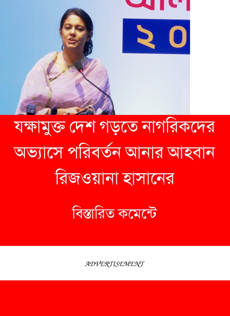 উপদেষ্টা বলেন, সবার সম্মিলিত প্রয়াসের মাধ্যমেই একটি যক্ষামুক্ত দেশ গড়া সম্ভব। সেজন্য সবার অংশগ্রহণ ও সচেতনতা দরকার বলেও জানান তিনি।