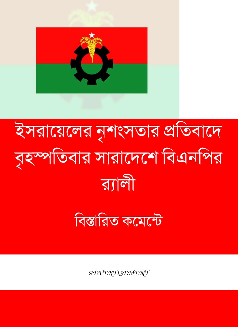 ইসরায়েলের নৃশংসতার প্রতিবাদে বৃহস্পতিবার সারাদেশে বিএনপির র‍্যালী