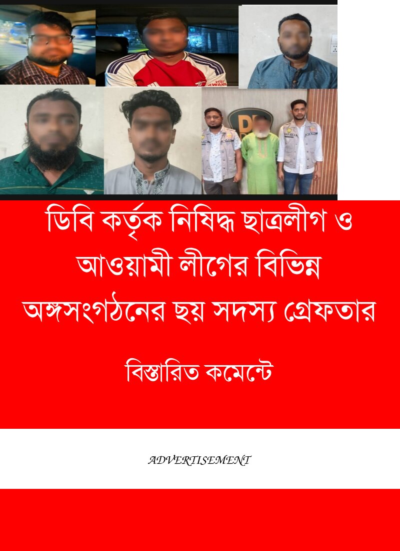 ডিবি কর্তৃক নিষিদ্ধ ছাত্রলীগ ও আওয়ামী লীগের বিভিন্ন অঙ্গসংগঠনের ছয় সদস্য গ্রেফতার*