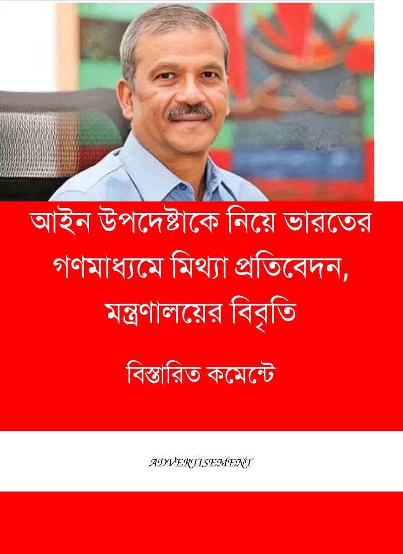 আইন উপদেষ্টাকে নিয়ে ভারতের গণমাধ্যমে মিথ্যা প্রতিবেদন, মন্ত্রণালয়ের বিবৃতি