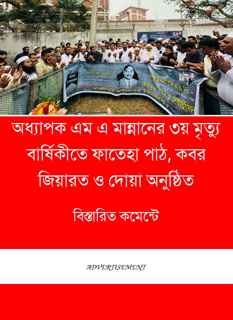 অধ্যাপক এম এ মান্নানের ৩য় মৃত্যু বার্ষিকীতে ফাতেহা পাঠ, কবর জিয়ারত ও দোয়া অনুষ্ঠিত