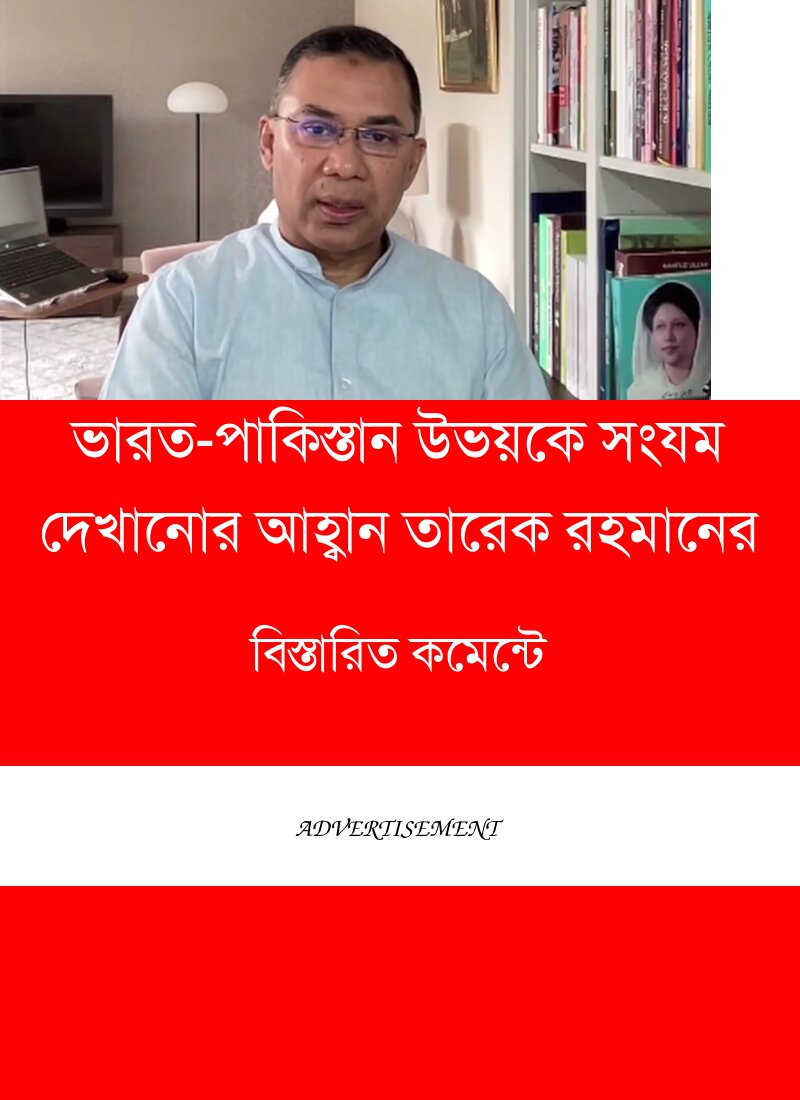 ভারত-পাকিস্তান উভয় দেশকে সংযম প্রদর্শনের আহ্বান জানিয়েছেন বিএনপির ভারপ্রাপ্ত চেয়ারম্যান তারেক রহমান। বুধবার (৭ মে) সামাজিক যোগাযোগমাধ্যমে দেয়া এক পোস্টে তিনি এই আহ্বান জানান।