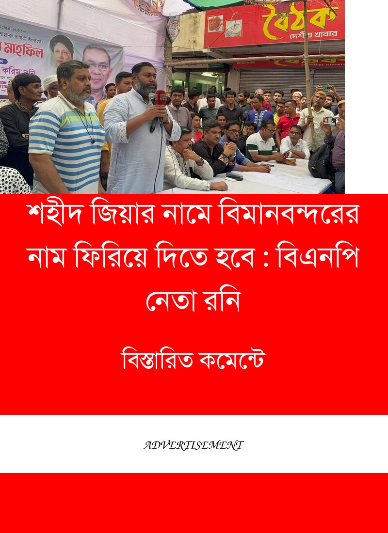 গাজীপুর মহানগর বিএনপির সাধারণ সম্পাদক এম মঞ্জুরুল করিম রনি বলেন, টঙ্গী থেকে আমাদের দুটি দাবি উত্থাপন করছি। একটি হল ডিসেম্বরের মধ্যে নির্বাচন দিতে হবে। আরেকটি হল, শাহজালাল আন্তর্জাতিক বিমানবন্দরের নাম শহীদ জিয়ার নামে ফিরিয়ে দিতে হবে।