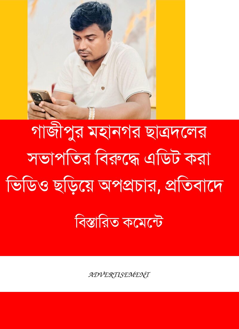 গাজীপুর মহানগর ছাত্রদলের সভাপতি রোকনজ্জামান শুকুর কে নিয়ে সামাজিক যোগাযোগমাধ্যমে একটি এডিট করা ভিডিও ছড়িয়ে অপপ্রচার চালানো হচ্ছে বলে অভিযোগ উঠেছে। ভিডিওটিকে পরিকল্পিতভাবে বিকৃত করে ছড়িয়ে দেওয়া হয়েছে বলে দাবি করেছেন দলীয় নেতাকর্মীরা।