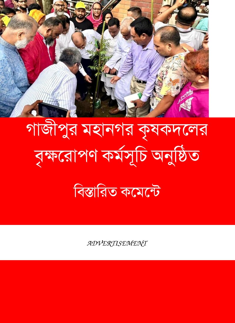 জুলাই-আগস্ট গণঅভ্যুত্থানের স্মরণে ও শহীদদের প্রতি শ্রদ্ধা জানিয়ে “সবুজ পল্লবের স্মৃতি অম্লান” শীর্ষক একটি বৃক্ষরোপণ কর্মসূচি পালন করেছে গাজীপুর মহানগর কৃষক দল।