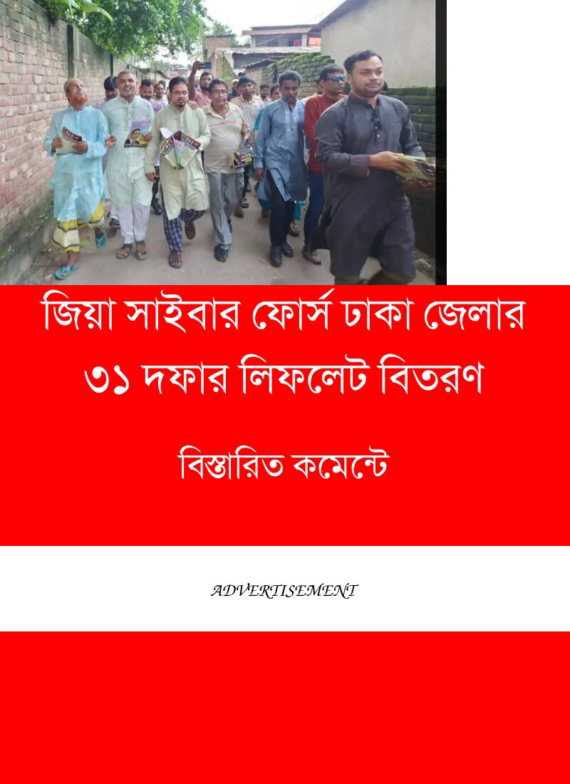 বাংলাদেশ জাতীয়তাবাদী দল বিএনপির অন-লাইন মিডিয়া ও স্বেচ্ছাসেবী সংগঠন জিয়া সাইবার ফোর্স ঢাকা জেলার উদ্যোগে বিএনপি ভারপ্রাপ্ত চেয়ারম্যান জনাব তারেক রহমান কর্তৃক ঘোষিত ৩১ দফা রাষ্ট্র কাঠামো মেরামতে লিফলেট বিতরণ কর্মসূচি অনুষ্ঠিত হয়েছে।