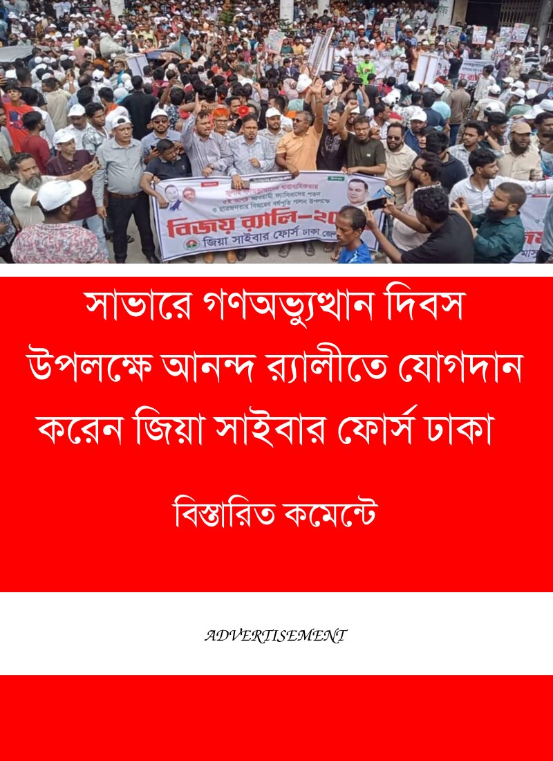 সাভারে গণঅভ্যুত্থান দিবস উপলক্ষে আনন্দ র‍্যালীতে যোগদান করেন জিয়া সাইবার ফোর্স ঢাকা জেলা শাখা
