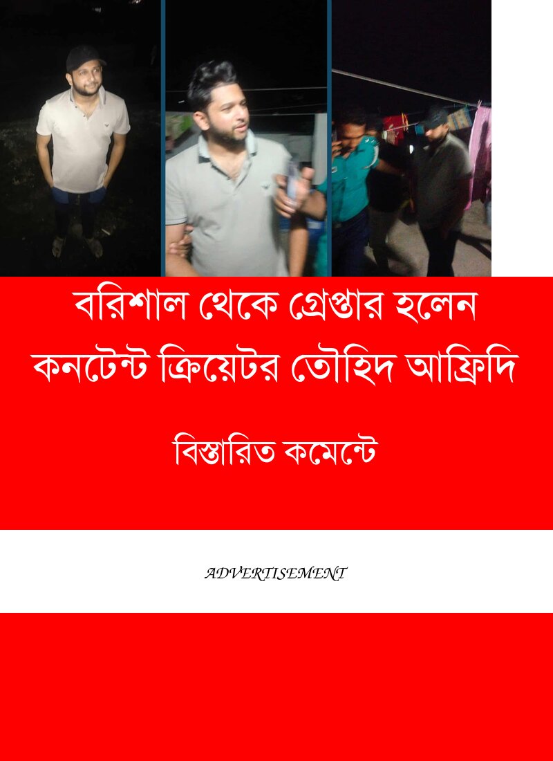 আলোচিত-সমালোচিত কনটেন্ট ক্রিয়েটর তৌহিদ আফ্রিদিকে গ্রেফতার করেছে পুলিশ। রোববার (২৪ আগস্ট) বরিশালে বিশেষ অভিযান চালিয়ে তাকে গ্রেফতার করেছে পুলিশের অপরাধ তদন্ত বিভাগ (সিআইডি)।