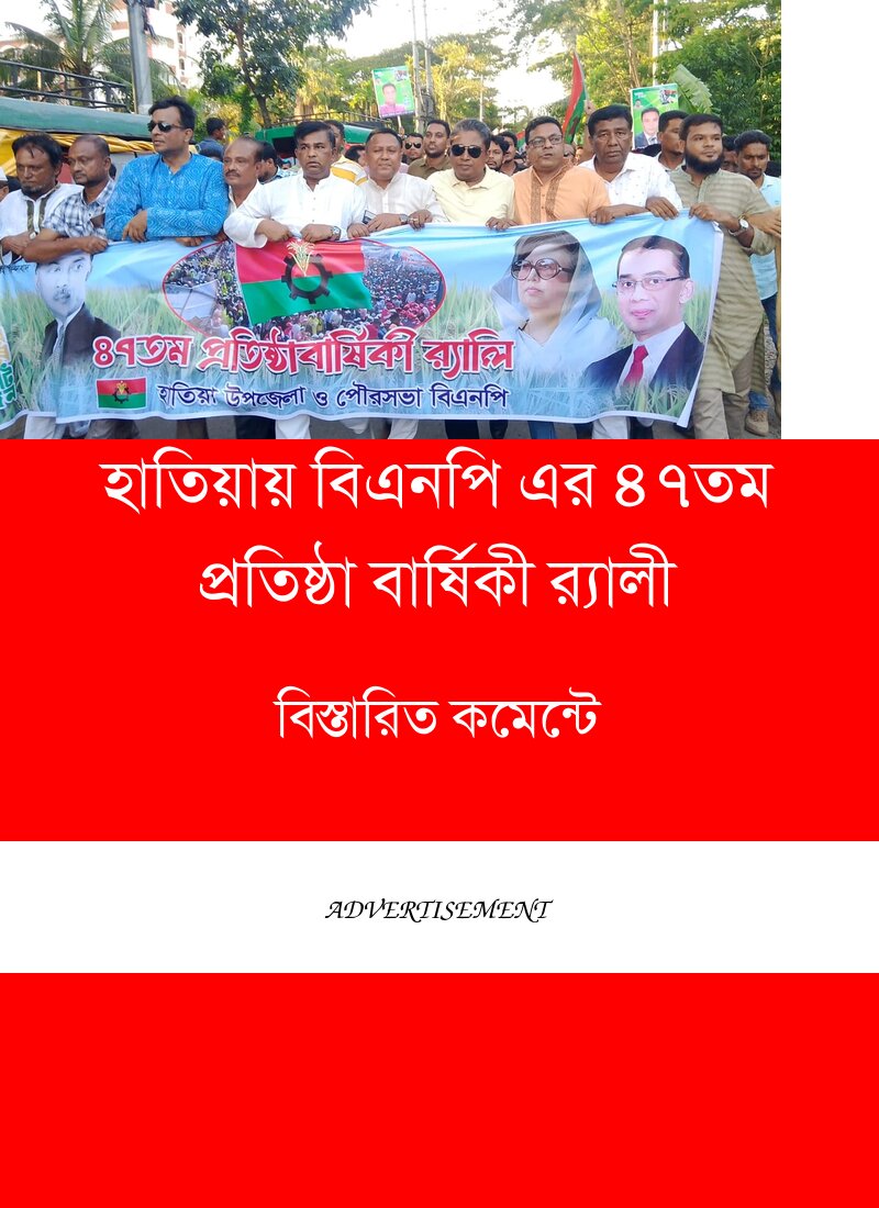 নোয়াখালীর জেলার বিছিন্ন দ্বীপ উপজেলা হাতিয়ায় বিএনপি’র ৪৭ তম প্রতিষ্ঠা বার্ষিকী উপলক্ষ্যে এক বর্ণাঢ্য র‍্যালী আলোচনা সভা অনুষ্ঠিত হয়েছে।