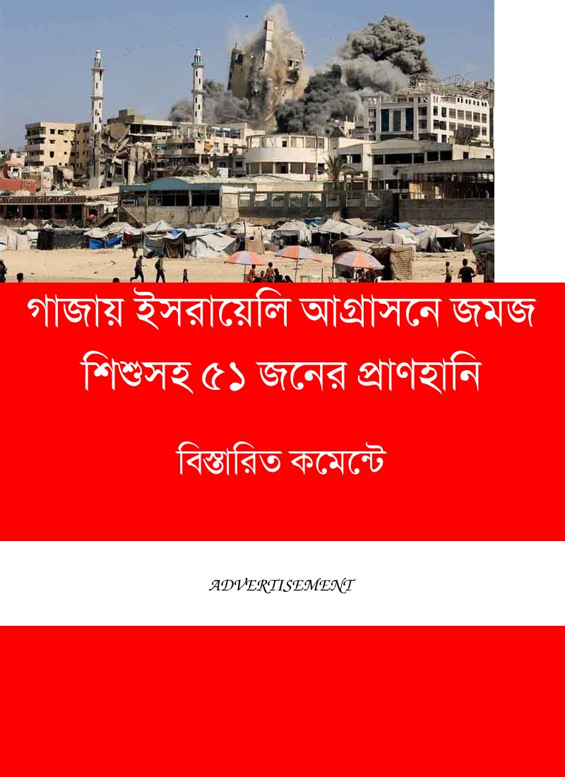 ফিলিস্তিনের অবরুদ্ধ গাজা ভূখণ্ডের সবচেয়ে বড় নগরী গাজা সিটিতে ইসরায়েলের ব্যাপক বিমান হামলায় লাখ লাখ মানুষ ঘরবাড়ি ছেড়ে পালাতে বাধ্য হচ্ছেন। ২৪ ঘণ্টায় এই শহরে টানা বোমাবর্ষণে অন্তত ৫১ জন নিহত হয়েছেন, যাদের মধ্যে ছয় বছর বয়সী যমজ শিশু এবং তিনজন সাংবাদিকও রয়েছেন।
