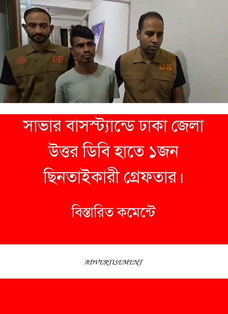 ঢাকা জেলা পুলিশের অভিভাবক জনাব মোঃ আনিসুজ্জামান (পিপিএম), পুলিশ সুপার, ঢাকা মহোদয়ের নির্দেশনায় বিশেষ অভিযান পরিচালনাকালে ঢাকা জেলার ডিবি (উত্তর) , এর অফিসার ইনচার্জ মোঃ জালাল উদ্দিন এর নেতৃত্বে এসআই (নিঃ) কাজী কামাল মিয়া অফিসার ও ফোর্সসহ অদ্য ১৫/০৯/২৫ তারিখ সকাল ৯ ঘটিকায় সাভার মডেল থানাধীন সাভার বাস স্ট্যান্ড এলাকা হইতে ছিনতাইকারী দলের সদস্য ০১। মোঃ আব্দুস সালাম (৩০), পিতা-রাজন, মাতা-নুরজাহান, সাং-বাউসা, থানা- হালুয়াঘাট, জেলা-ময়মনসিংহ, এপি/ সাং-মোশারফ মিয়ার বাড়ির ভাড়াটিয়া, বগাবাড়ি বাইপাইল, থানা-আশুলিয়া, জেলা- ঢাকাকে গ্রেফতার করেন। ধৃত ছিনতাইকারীকে প্রাথমিক জিজ্ঞাসাবাদে জানা যায়, উক্ত ছিনতাইকারী ঢাকা সাভার, আশুলিয়া, ধামরাই থানা এলাকায় ছিনতাই,চুরি ডাকাতিসহ বিভিন্ন অপকর্মের সাথে জড়িত। উক্ত ছিনতাইকারীর বিরুদ্ধে আইনি কার্যক্রম প্রক্রিয়াধীন।