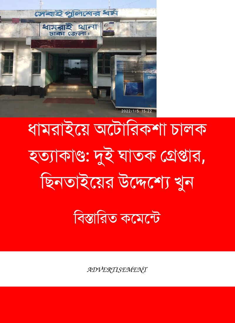 ধামরাইয়ে অটোরিকশা চালক হত্যাকাণ্ড: দুই ঘাতক গ্রেপ্তার, ছিনতাইয়ের উদ্দেশ্যে খুন