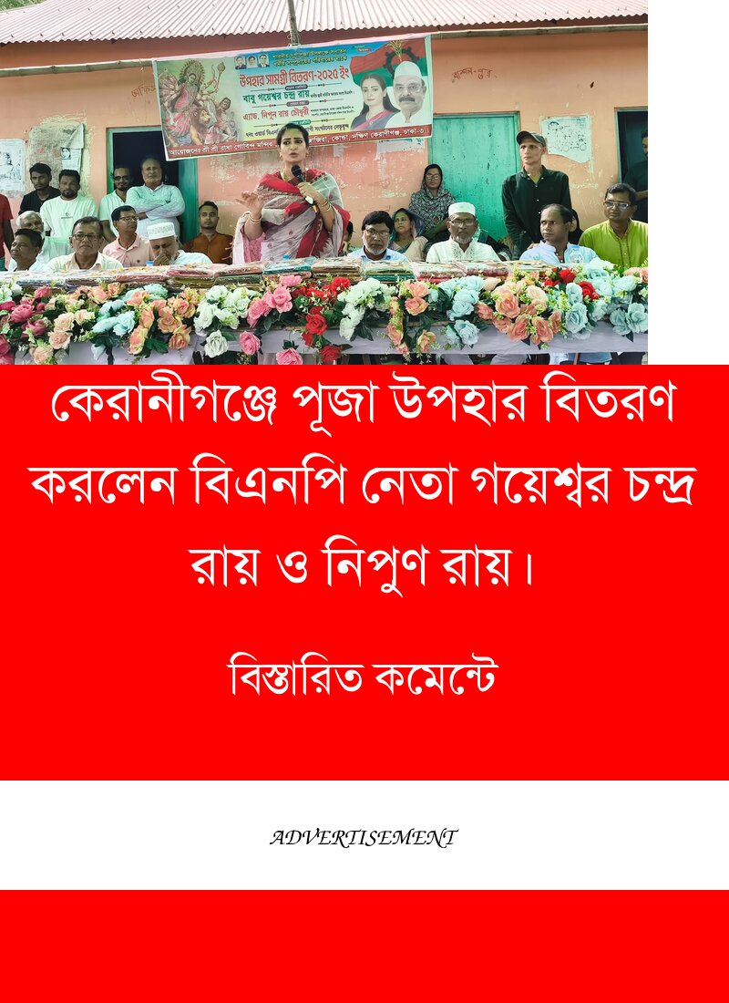 ধর্মাবলম্বীদের প্রধান ধর্মীয় উৎসব শারদীয় দুর্গাপূজা উপলক্ষে বিএনপি’র জাতীয় স্থায়ী কমিটির সদস্য বাবু গয়েশ্বর চন্দ্র রায় আজ বৃহস্পতিবার (২৫ সেপ্টেম্বর, ২০২৫) কেরানীগঞ্জে উপহারসামগ্রী বিতরণ করেছেন। ঢাকা জেলার দক্ষিণ কেরানীগঞ্জস্থ শ্রী শ্রী রাধা গোবিন্দ মন্দির জাজিরা পালপাড়া কোন্ডায় সনাতন ধর্মীয় সম্প্রদায়ের পরিবারের মাঝে এই উপহারসামগ্রী তুলে দেওয়া হয়।