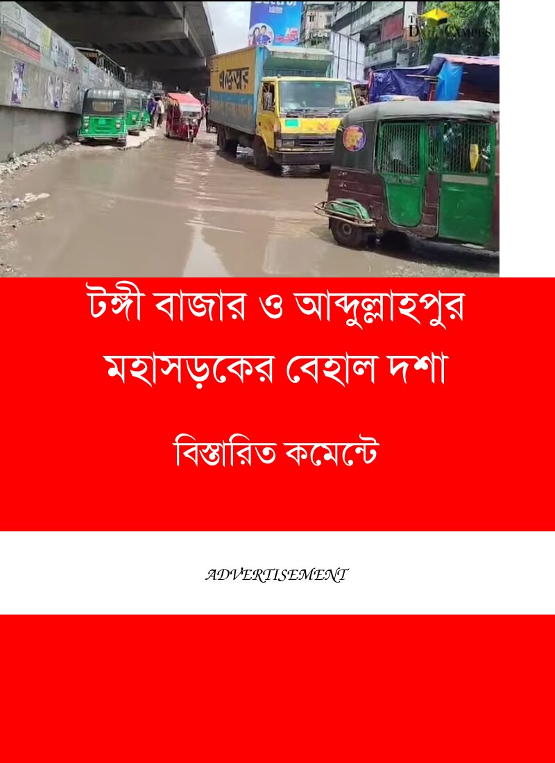 সংশ্লিষ্ট কর্তৃপক্ষের প্রতি জরুরি আহ্বান—টঙ্গী বাজার থেকে আব্দুল্লাহপুর পর্যন্ত মহাসড়ক অবিলম্বে সংস্কার করা হোক, যেন সাধারণ মানুষ নির্বিঘ্নে যাতায়াত করতে পারে।