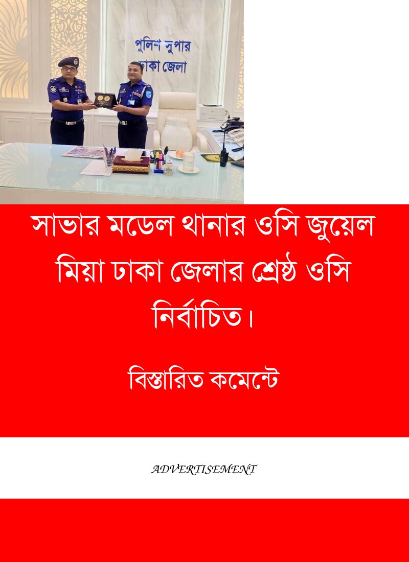 ​ওসি জুয়েল মিয়াকে তার এই সাফল্যের জন্য অভিনন্দন। তার কাছে সাভারবাসীর প্রত্যাশা, আগামী দিনগুলোতেও তিনি একইভাবে সততা ও নিষ্ঠার সঙ্গে জনগণের সেবা করে যাবেন এবং সাভার মডেল থানাকে একটি আদর্শ থানা হিসেবে গড়ে তুলবেন।