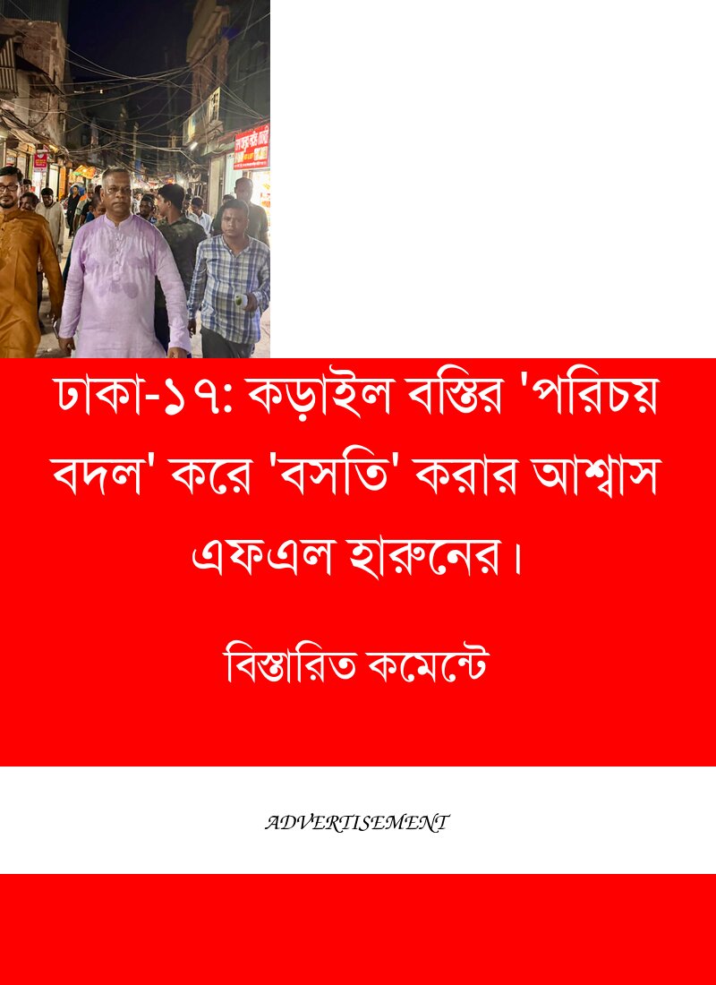 গত ২৬ সেপ্টেম্বর রোজ শুক্রবার বিকালে ড. মুহাম্মাদ হারুনুর রশিদ ভূঁইয়া ঢাকা-১৭ আসনে গণসংযোগ করার সময় কড়াইল বস্তিবাসীর সামনে এই প্রতিশ্রুতি দেন। তিনি দৃঢ়ভাবে জানান, নির্বাচনে বিপুল ভোটে জয়ী হলে কড়াইল বস্তির নাম আর ‘বস্তি’ থাকবে না; এর নাম হবে ‘বসতি’।