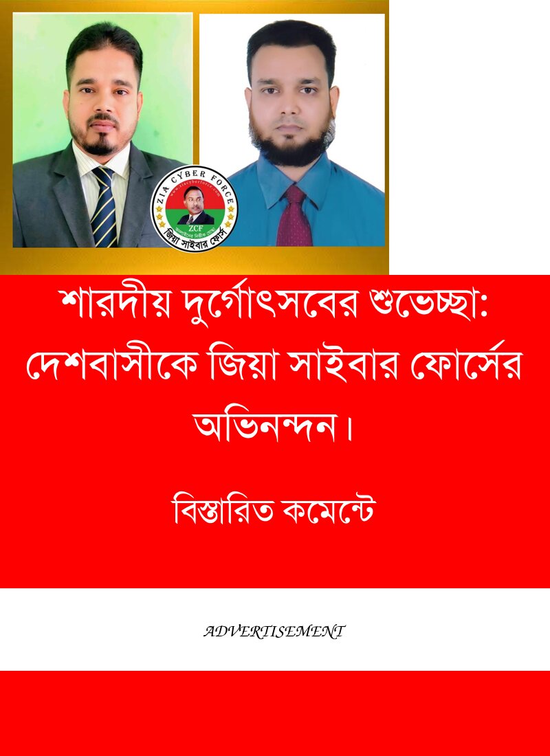 সনাতন ধর্মাবলম্বীদের প্রধান ধর্মীয় উৎসব শারদীয় দুর্গাপূজা উপলক্ষে বাংলাদেশ সহ বিশ্বের সকল হিন্দু ধর্মাবলম্বীকে আন্তরিক শুভেচ্ছা ও অভিনন্দন জানিয়েছে জিয়া সাইবার ফোর্স।