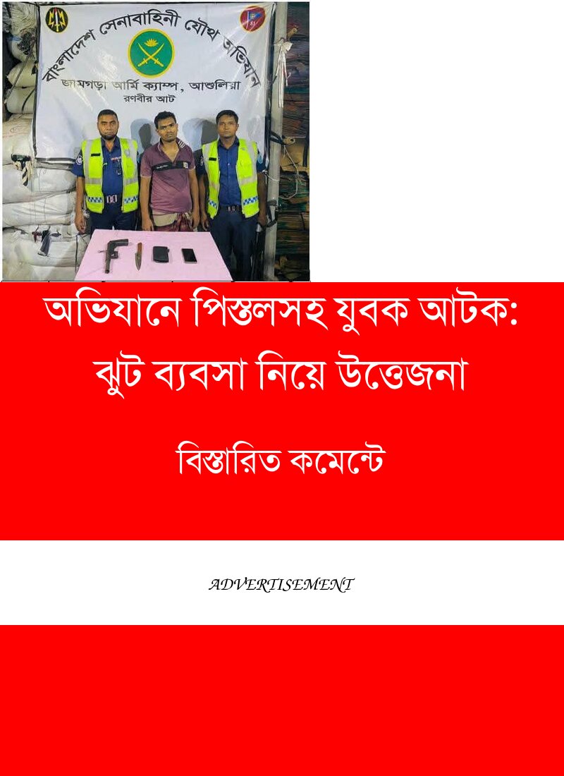 শনিবার (০৪ অক্টোবর ২০২৫) রাতে সাভারের আশুলিয়ার জামগড়া এলাকায় একটি ঝুট ব্যবসাকে কেন্দ্র করে সম্ভাব্য অস্ত্রের মহড়ার খবর পেয়ে দ্রুত তৎপর হয় জামগড়া আর্মি ক্যাম্পের সেনা টহল দল। পরবর্তীতে পরিচালিত ঝটিকা অভিযানে একটি স্থানীয় গোডাউন থেকে দেশীয় তৈরি একটি পিস্তল উদ্ধার করা হয় এবং ঘটনাস্থল থেকে একজনকে আটক করা হয়।আটককৃত ব্যক্তি: আজাদ (৩৭)। তার বাবার নাম ইউনুচ, গ্রাম: পশ্চিম সোনাদিয়া, থানা: কোম্পানির হাট।আইনগত প্রক্রিয়া: আটককৃত ব্যক্তি ও উদ্ধারকৃত অস্ত্র পরবর্তী আইনগত ব্যবস্থার জন্য আশুলিয়া থানা পুলিশের কাছে হস্তান্তর করা হয়েছে।
