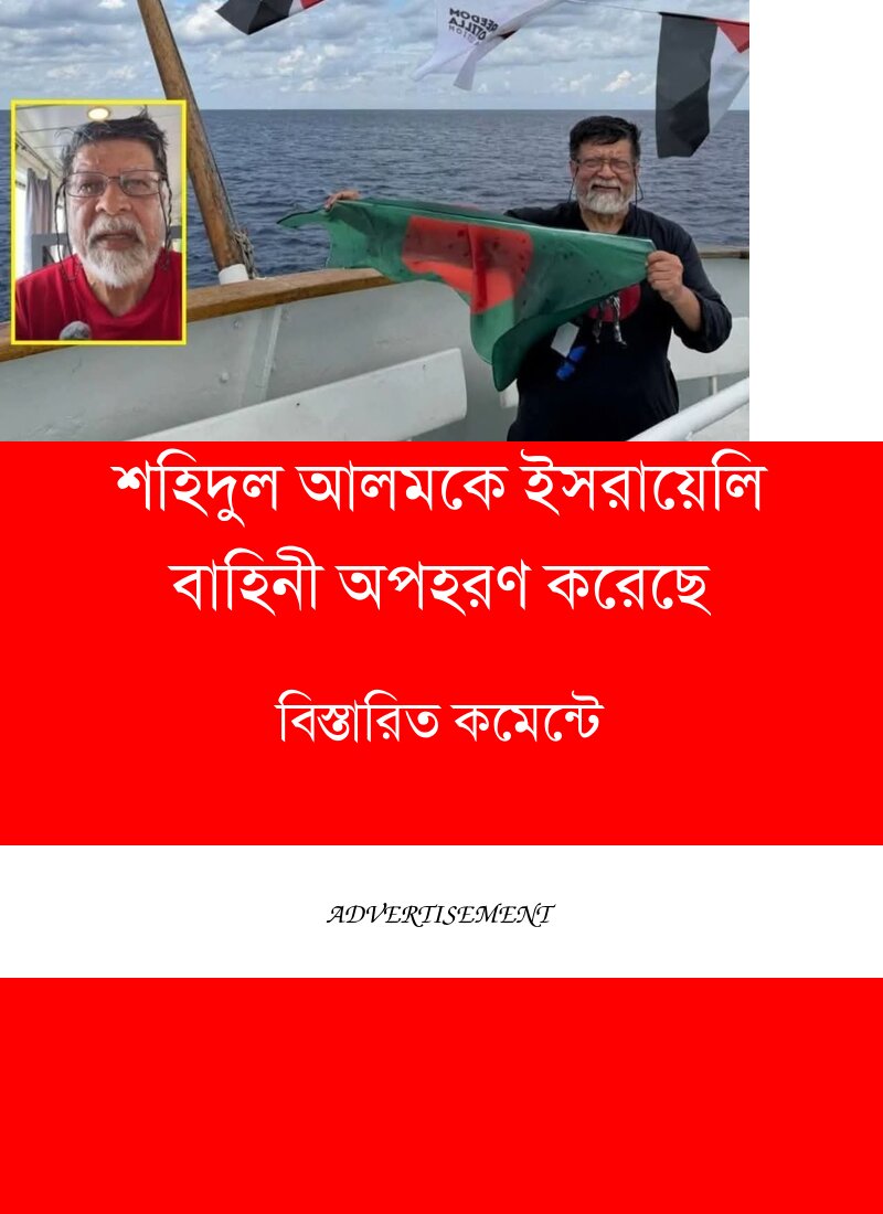 ৮ অক্টোবর, বুধবার, বাংলাদেশি আলোকচিত্রী ও লেখক শহিদুল আলম একটি ভিডিওবার্তায় দাবি করেছেন, ইসরায়েলি বাহিনী তাকে অপহরণ করেছে। ভিডিওটি তিনি নিজের ভেরিফায়েড ফেসবুক অ্যাকাউন্টে পোস্ট করেন, বাংলাদেশ সময় সোয়া ১০টার পর।