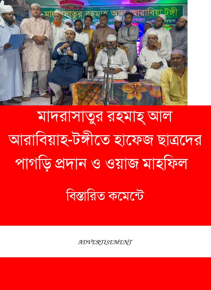 গাজীপুরের টঙ্গীতে অবস্থিত মাদরাসাতুর রহমাহ্ আল আরাবিয়াহ-এর উদ্যোগে হাফেজ ছাত্রদের পাগড়ি প্রদান ও বার্ষিক ওয়াজ মাহফিল অনুষ্ঠান অনুষ্ঠিত হয়েছে।