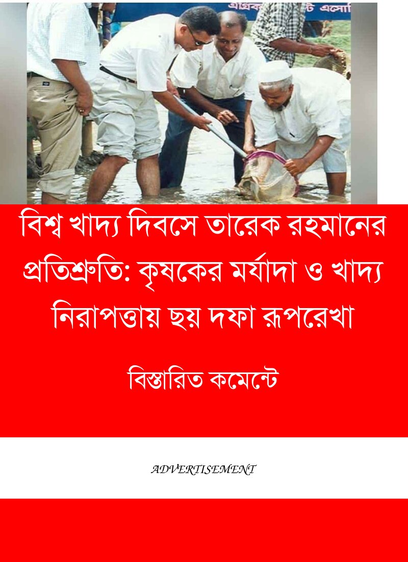 বিশ্ব খাদ্য দিবস উপলক্ষে বিএনপির ভারপ্রাপ্ত চেয়ারম্যান তারেক রহমান বাংলাদেশের কৃষকদের ভাগ্যোন্নয়নে ছয় দফা পরিকল্পনা ঘোষণা করেছেন।