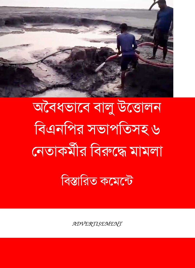 নোয়াখালীর বিচ্ছিন্ন দ্বীপ উপজেলা হাতিয়ার নিঝুমদ্বীপ ইউনিয়নের সমুদ্র সৈকত থেকে বালু উত্তোলনের অভিযোগে বিএনপির সাবেক সভাপতি সহ ৬ নেতাকর্মীর নামে মামলা হয়েছে। এ ঘটনায় আরও ৪–৫ জনকে অজ্ঞাতনামা আসামি করা হয়েছে।