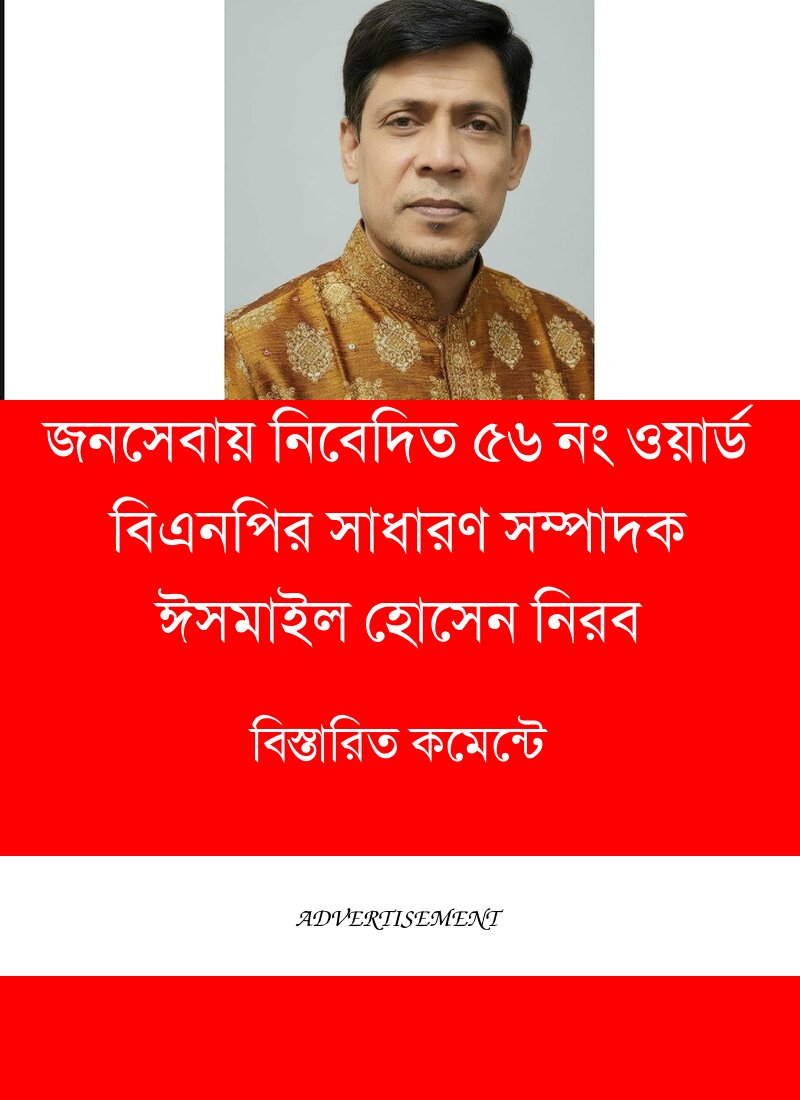 মানবতার সেবায় নিজেকে নিবেদিত করে ৫৬ নং ওয়ার্ড বিএনপির সাধারণ সম্পাদক ঈসমাইল হোসেন নিরব নিরলসভাবে কাজ করে যাচ্ছেন জনস্বার্থে। এলাকার মশা নিধনে ওষুধ ছিটানো, ড্রেন ও পয়ঃনিষ্কাশন ব্যবস্থা পরিষ্কার রাখা, অন্ধকার রাস্তায় ল্যাম্পপোস্ট স্থাপনসহ জনগণের নানাবিধ সমস্যা সমাধানে তিনি সবসময় সক্রিয় ভূমিকা রাখছেন।