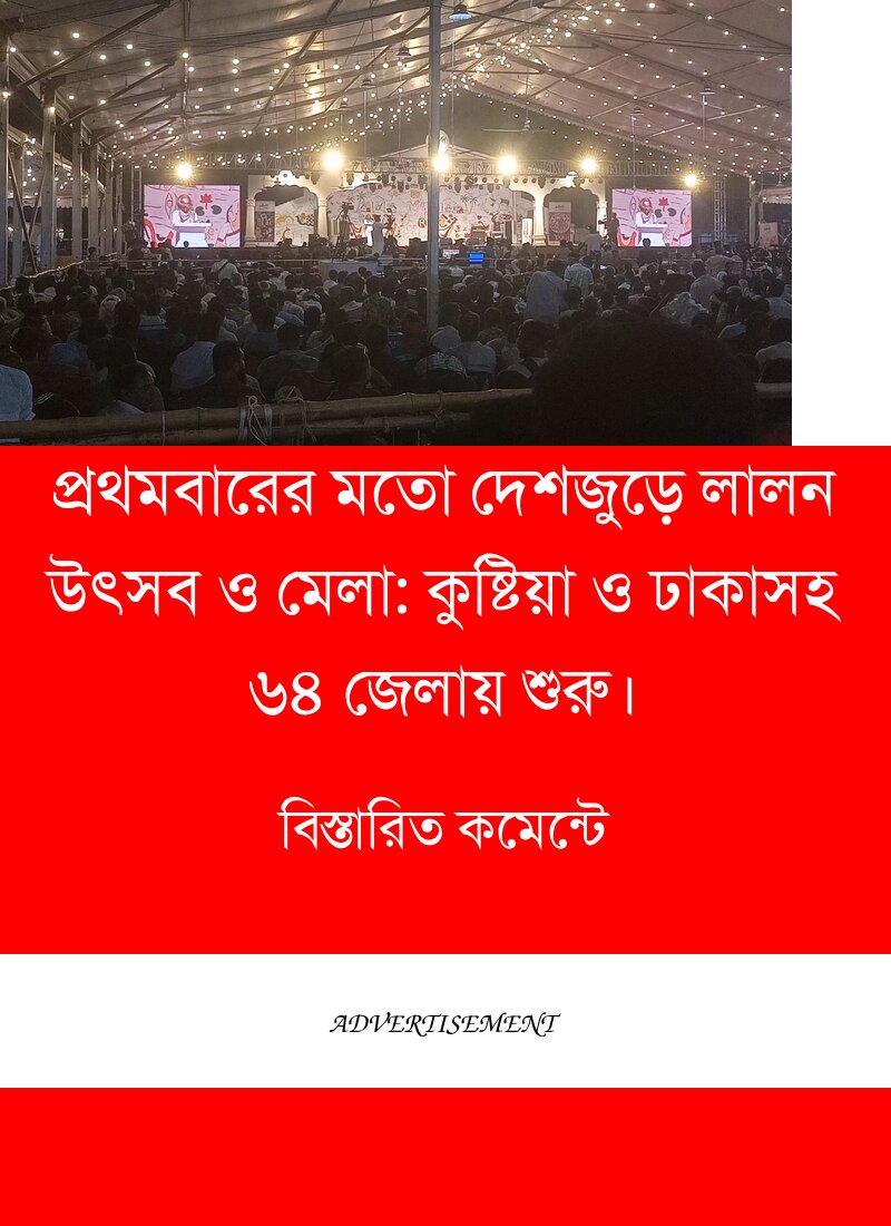 বাউল সম্রাট ফকির লালন সাঁইয়ের ১৩৫তম তিরোধান দিবস উপলক্ষে এই প্রথমবার জাতীয়ভাবে এবং দেশজুড়ে একযোগে শুরু হলো ‘লালন উৎসব ও লালন মেলা’। নতুন বাংলাদেশের সাংস্কৃতিক অভিযাত্রার অংশ হিসেবে সংস্কৃতি মন্ত্রণালয়ের আয়োজনে আগামী ১৭ অক্টোবর থেকে দেশের ৬৪টি জেলায় এই বিশাল সাংস্কৃতিক অনুষ্ঠানের সূচনা হয়েছে।সারাদেশে উৎসবের আমেজ